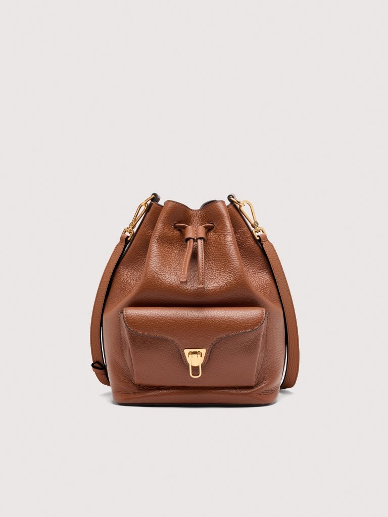 La Coccinelle Beat si caratterizza per il suo design a secchiello che, con una forma morbida e strutturata allo stesso tempo, offre una capienza ideale per l'uso quotidiano. La tracolla in pelle, resistente e morbida, è regolabile e permette una doppia portabilità, sia a tracolla che a mano. Perfetta per ogni esigenza, che si tratti di un look casual o di un outfit più formale.