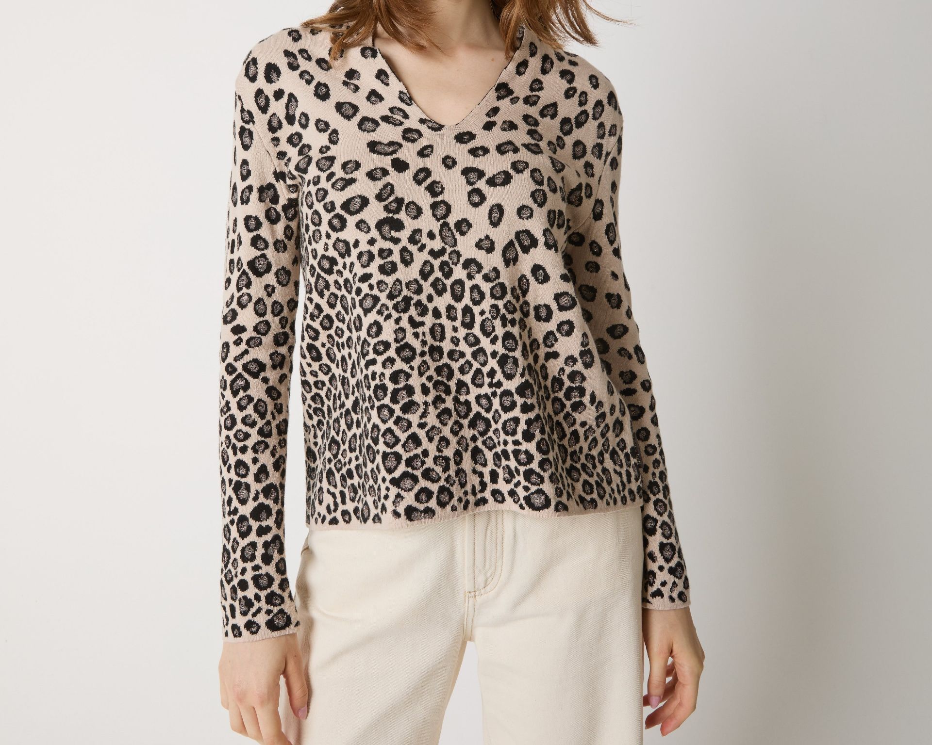 Motivo animalier jacquard: stampa raffinata e glamour, perfetta per chi ama capi distintivi ma eleganti.
