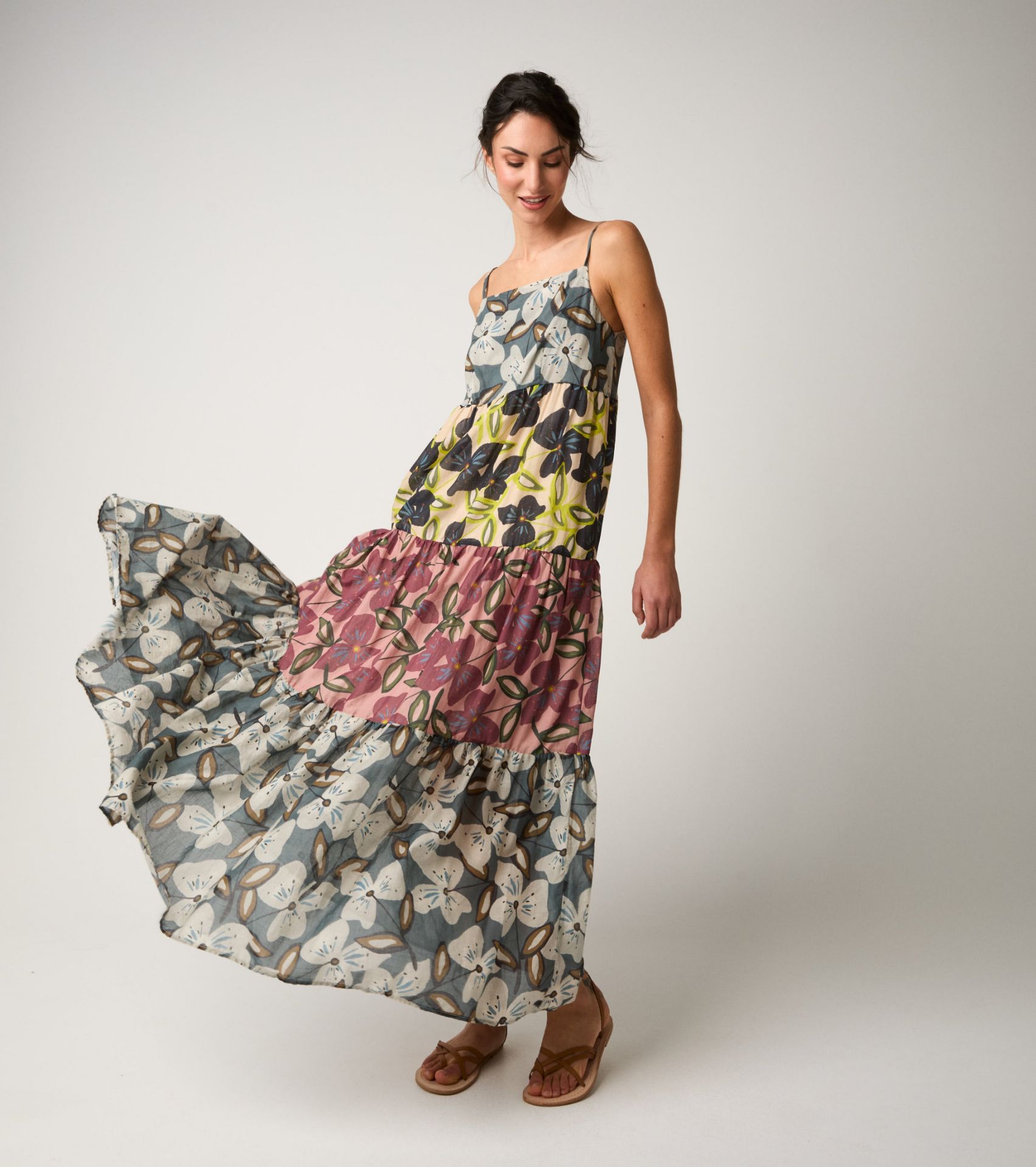 Aggiungi un tocco di freschezza e femminilità al tuo guardaroba con questo abito lungo donna in cotone, decorato con una vibrante stampa floreale all over. La scollatura quadrata e le spalline sottili rendono il modello leggero e arioso, mentre le balze fluide conferiscono movimento ad ogni passo. Ideale per look estivi, urbani o romantici, è perfetto per chi ama uno stile giovane e spensierato, senza rinunciare all’eleganza quotidiana.