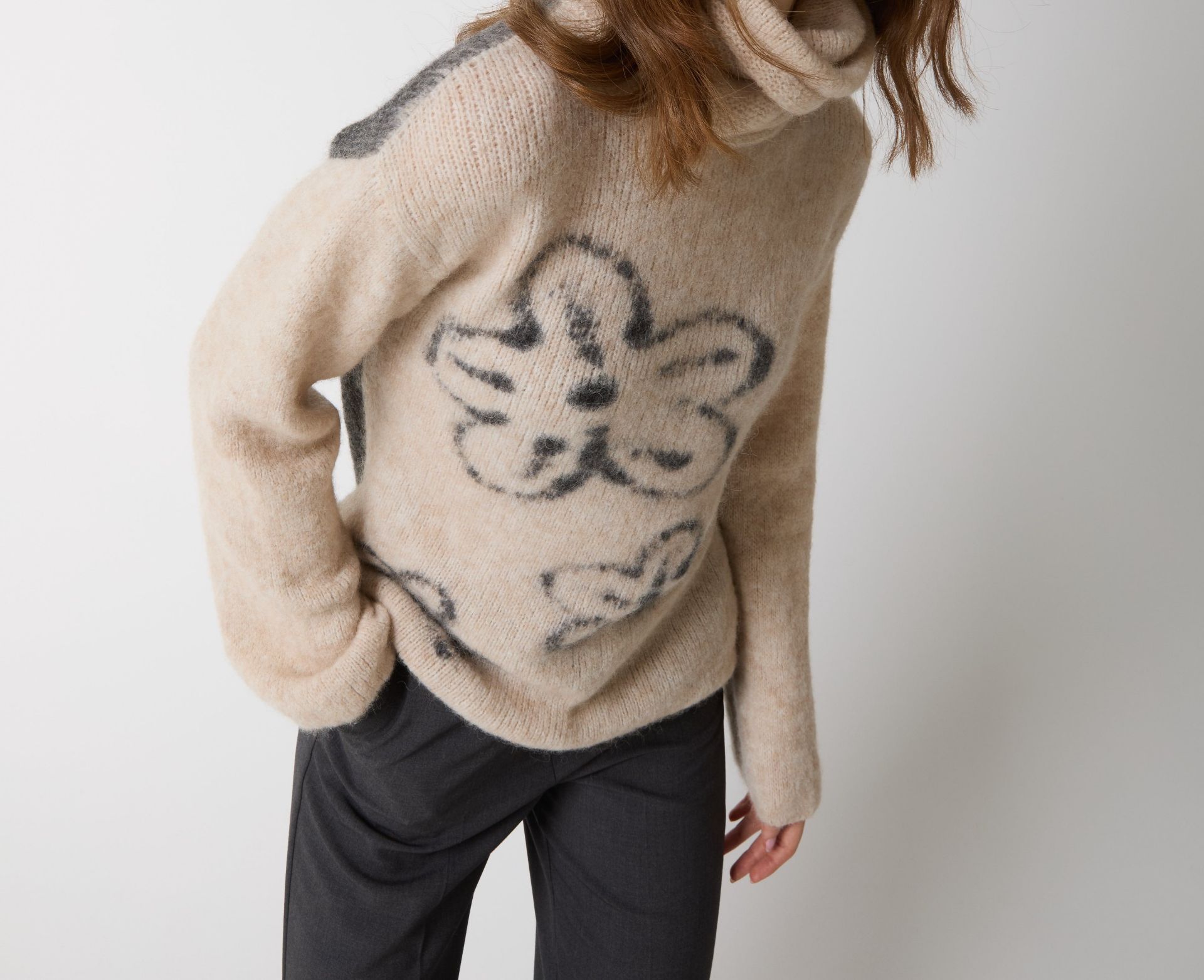 Linea morbida e collo dolcevita: vestibilità rilassata che valorizza qualsiasi silhouette e permette facili stratificazioni.